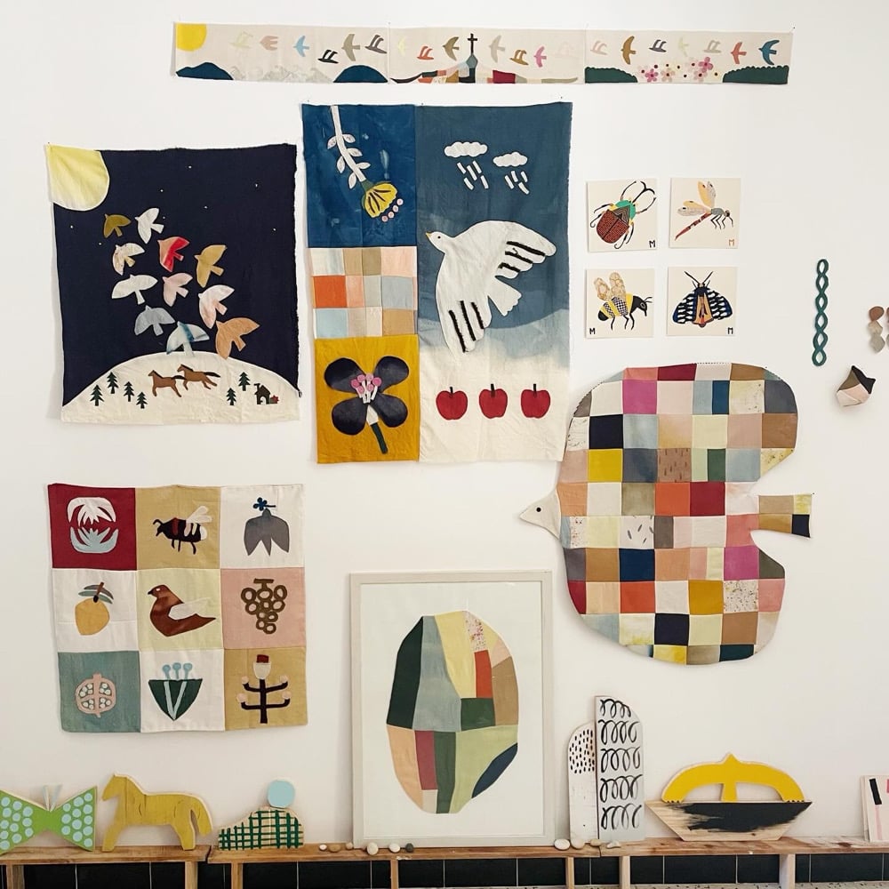 Baby blanket or wall decor using almost the vegetable dye scraps and cotton or linen.